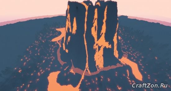 За счет своего привлекательного внешнего вида, это место будет привлекать огромное количество крафтеров, но это лишь внешняя оболочка всего, так как внутри этого вулкана, таится намного больше... Вот только отправиться в само жерло, отважится не каждый из геймеров.